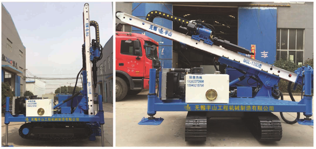 M G L-13 5 D型履帶式深基坑錨固鉆機(jī)是無錫半山工程機(jī)械制造有限公司根據(jù)國內(nèi)地鐵、高層建筑、機(jī)場(chǎng)、 地源熱泵及其它深基坑進(jìn)行描固、旋噴、降水所開發(fā)的效率高的鉆機(jī)。